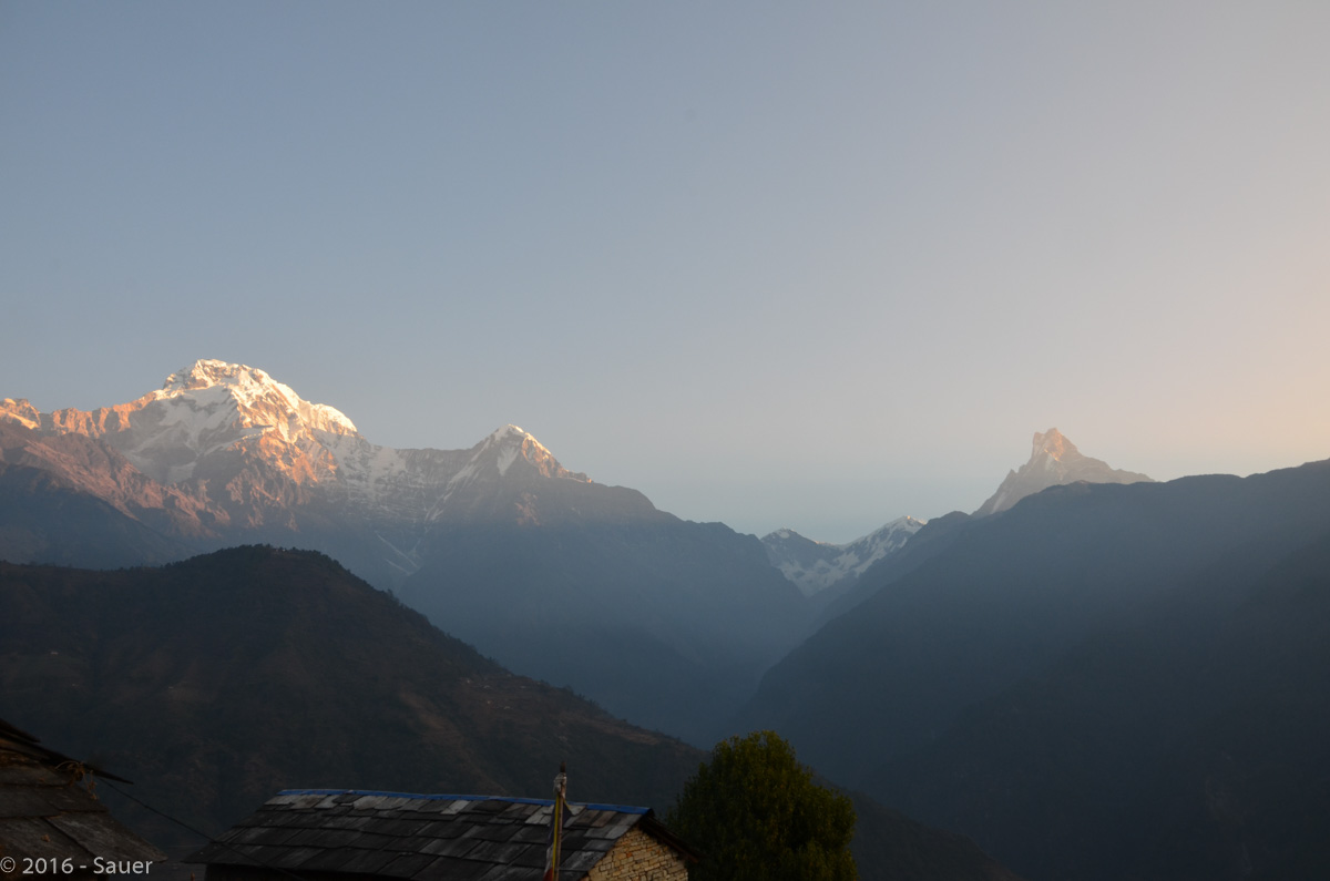 wir waren Mitte Februar in Nepal. Nachts war es echt kalt, auch in den Städten, aber tagsüber in der Sonne sehr warm. Solange man nicht gerade auf die höchsten Gipfel steigt, merkt man, dass Nepal doch recht nahe am Äquator liegt. Der indische Dschungel ist ja auch nicht weit.